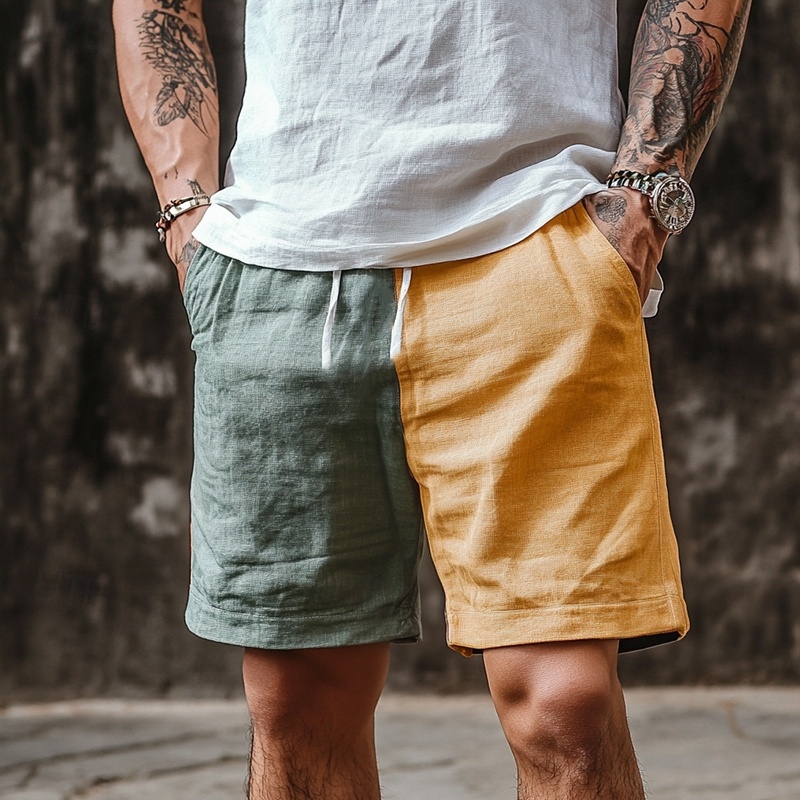 Men's Geometric Color Block Patchwork Shirt Button Up Shirt Short Sleeve Fashion Casual Vacation Holiday Streetwear Summer Turndown 3D Print Collared Shirts Front One Pocket Dark Yellow Blue Brown